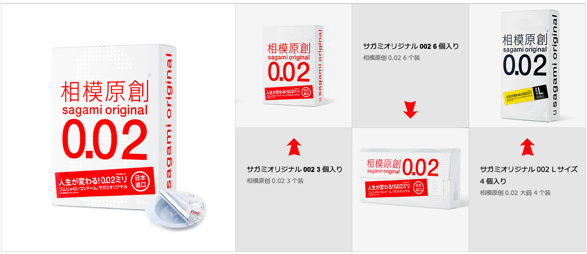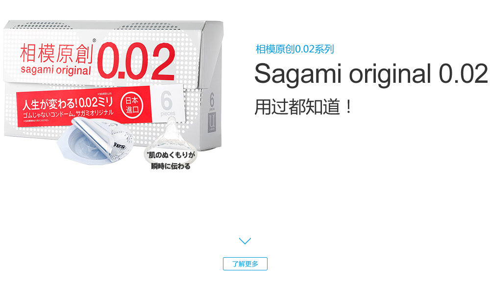 sagami original 0.02 (相模原創(chuàng)0.02系列), 是日本相模橡膠工業(yè)株式會社于1998年推出首次創(chuàng)新發(fā)明并向日本市場的一種以聚氨基甲酸酯 (高分子材料)為原料制成的非乳膠安全套, 厚度僅0.02mm, 是傳統(tǒng)的橡膠產(chǎn)品“厚度一半,強(qiáng)度三倍”, 并且擁有高導(dǎo)熱性能,讓產(chǎn)品使用體驗更加美妙!